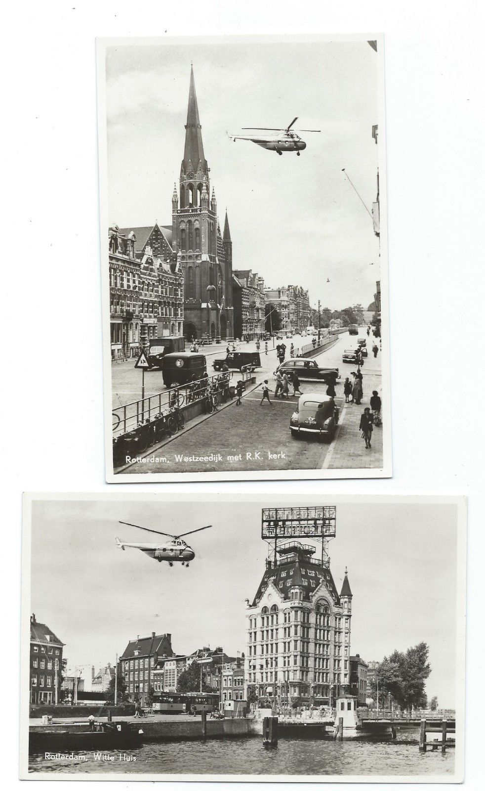 Netherlands Rotterdam 2 RP postcard lot with SABENA S55 Helicopter