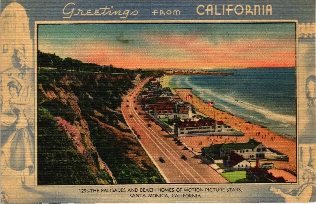 Title (ebay affiliate link): DR JIM STAMPS US PALISADES BEACH HOMES SANTA MONICA CALIFORNIA LINEN POSTCARD