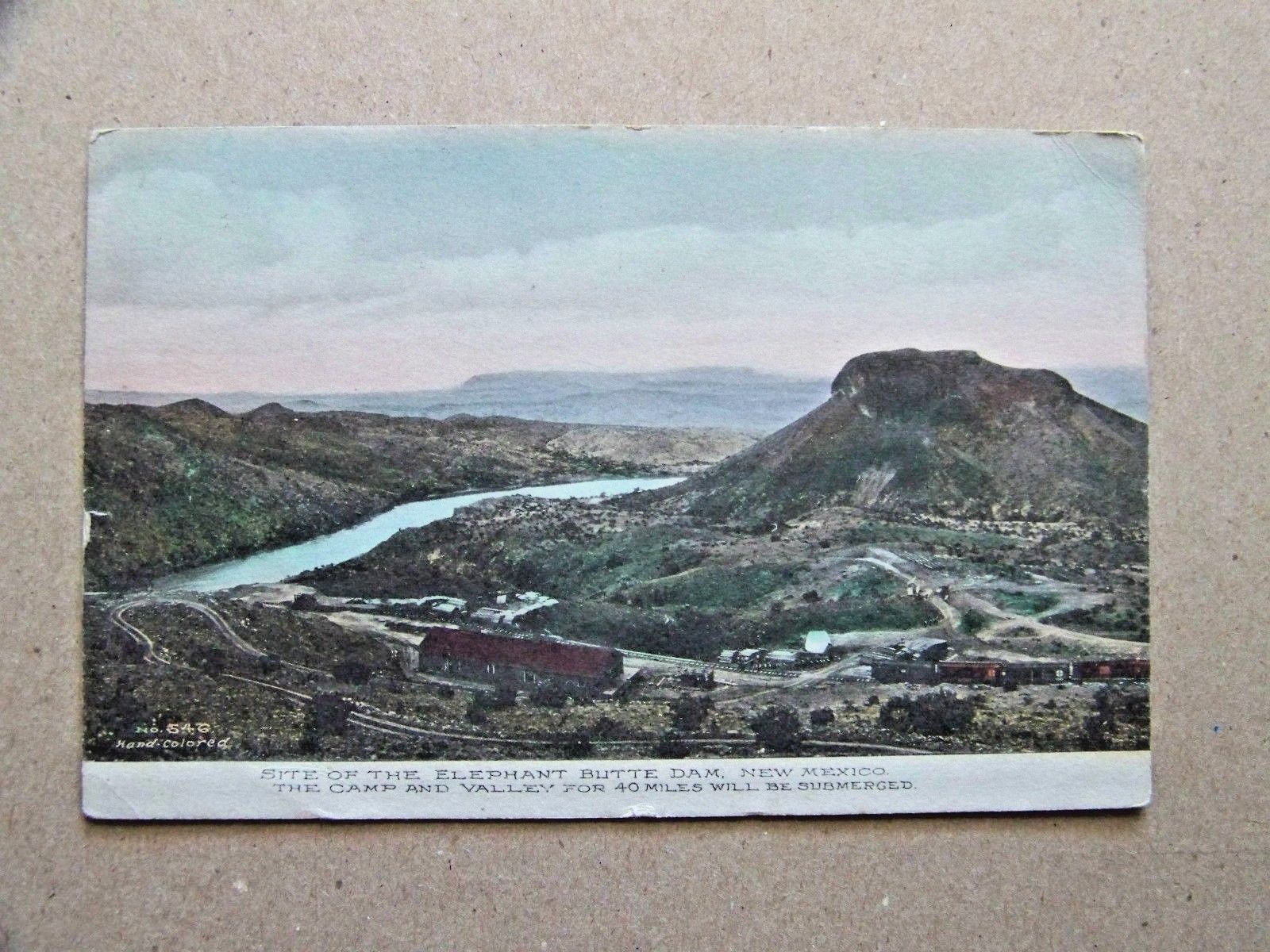 Title (ebay affiliate link): Elephant Butte Dam Site NM New Mexico Hand Colored Train Camp Valley Netherlands