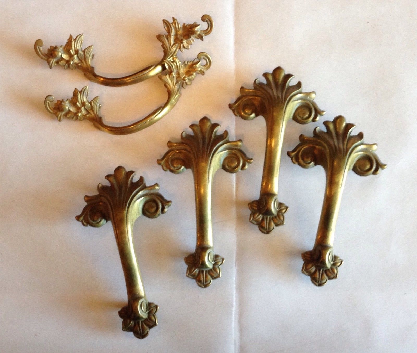 Lot of 6 Antique Brass Hardware Furniture Pulls