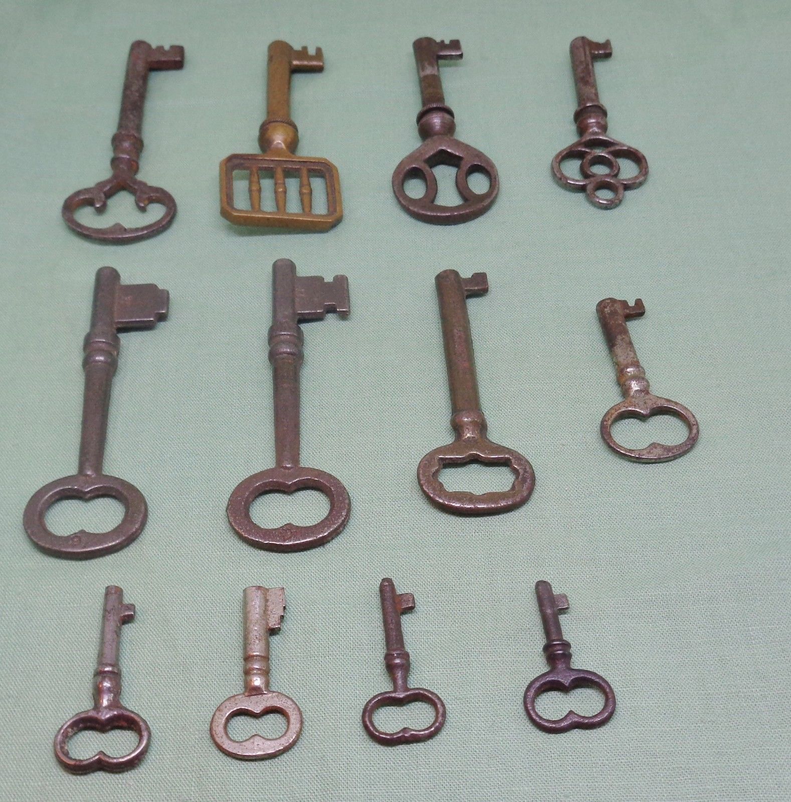 Vintage Antique skeleton key lot 12 brass hollow barrel door furniture cabinet