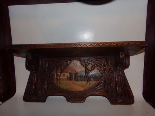 Title (ebay affiliate link): ANTIQUE WOODEN SHELF-CARVED-SCENE-PAINTED-FOLK ART-18 IN-SIGNED!CEPPNER NOCIA-JB