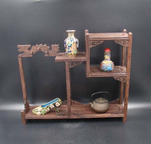 Title (ebay affiliate link): Rare solid hardwood curio shelves Stand Shelf Handmade Carving Deco Art