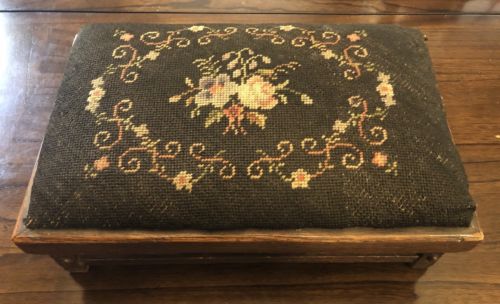 VINTAGE NEEDLE POINT FLORAL FOOT STOOL