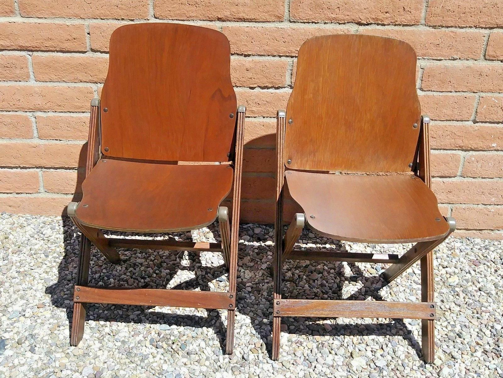 Title (ebay affiliate link): 2 US American Seating Co Vintage Wooden Folding Chairs WWII 2 Era 1940''s V Good
