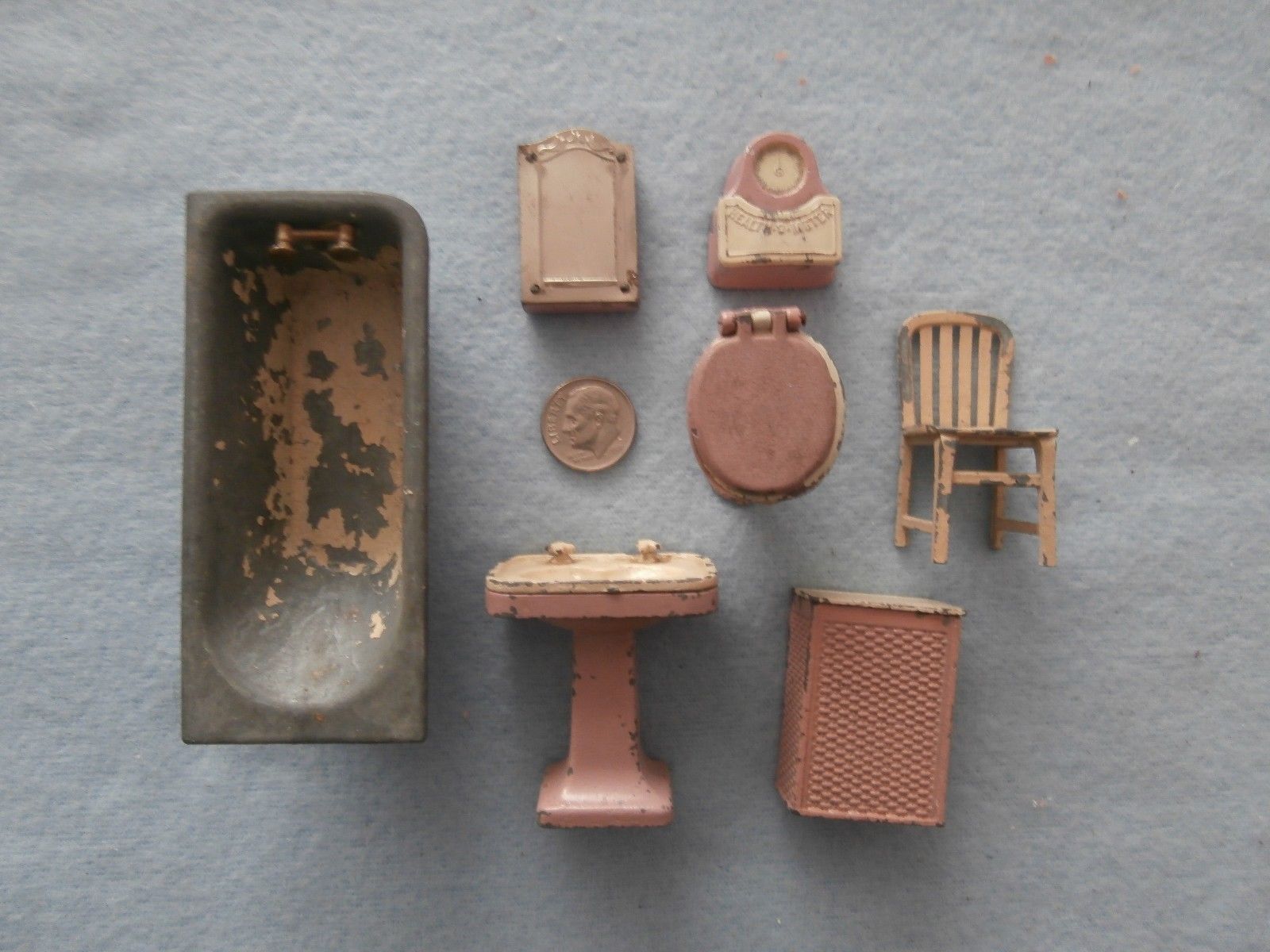 Title (ebay affiliate link): 7 PCS ANTIQUE VINTAGE TOOTSIE TOY DOLLHOUSE BATHROOM FURNITURE 1/4" SCALE