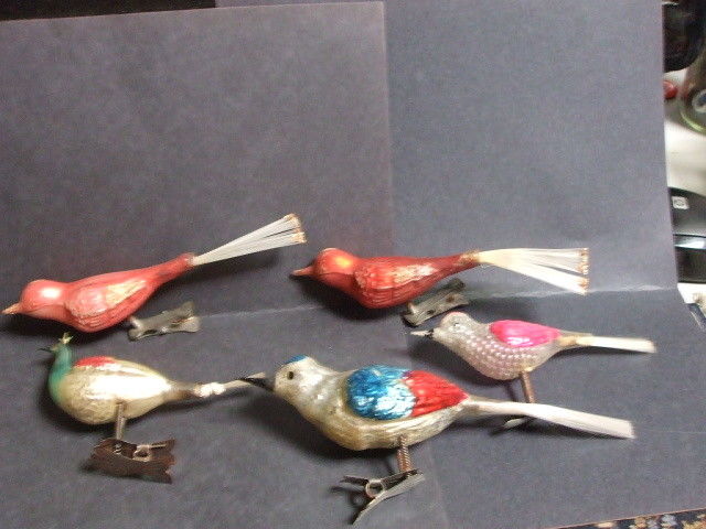 FIVE Birds Bird Mercury Glass Antique Christmas Ornaments