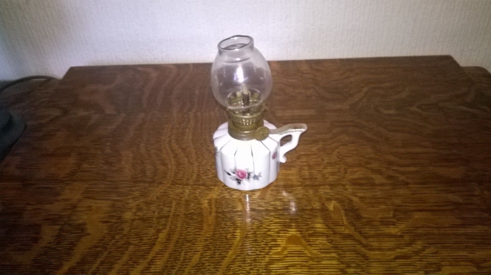 Title (ebay affiliate link): VINTAGE `SPHINX` MINIATURE OIL LAMP. CHINA BASE/FLOWER DESIGN 5 1/2 ins. TALL