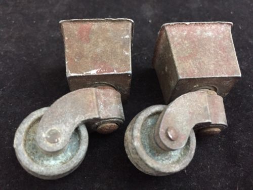 Title (ebay affiliate link): 2 Smaller Solid Brass Vintage Square Cup Furniture Casters 1 3/4" Ht; Wheel 3/4"