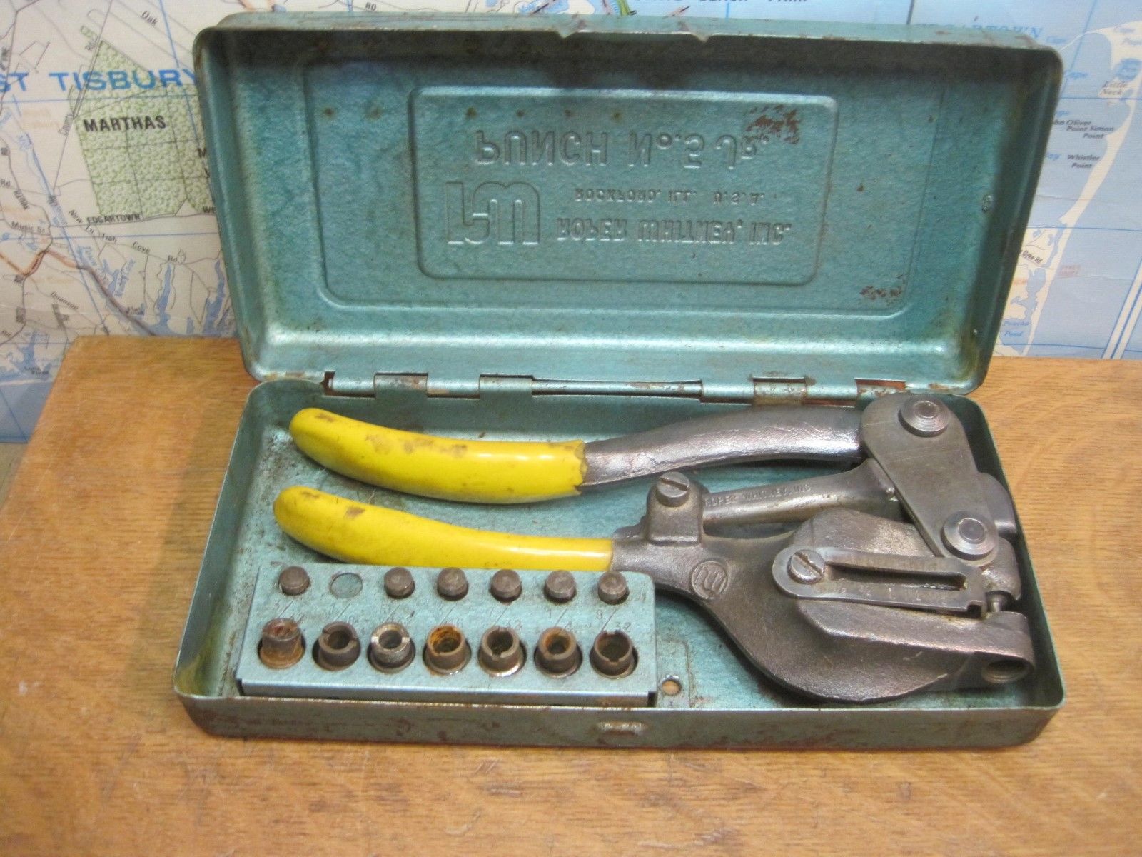 Title (ebay affiliate link): Roper Whitney Inc Punch No 5 Jr. Sheet Metal Key & Metal Case.