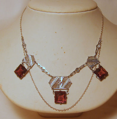 ANTIQUE DECO PURPLE FACETED CRYSTAL CHROME NECKLACE