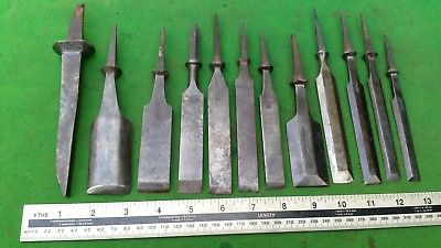 Title (ebay affiliate link): 12 Vintage chisel tangs, most named Sorby, Stormont, Whitehouse etc.
