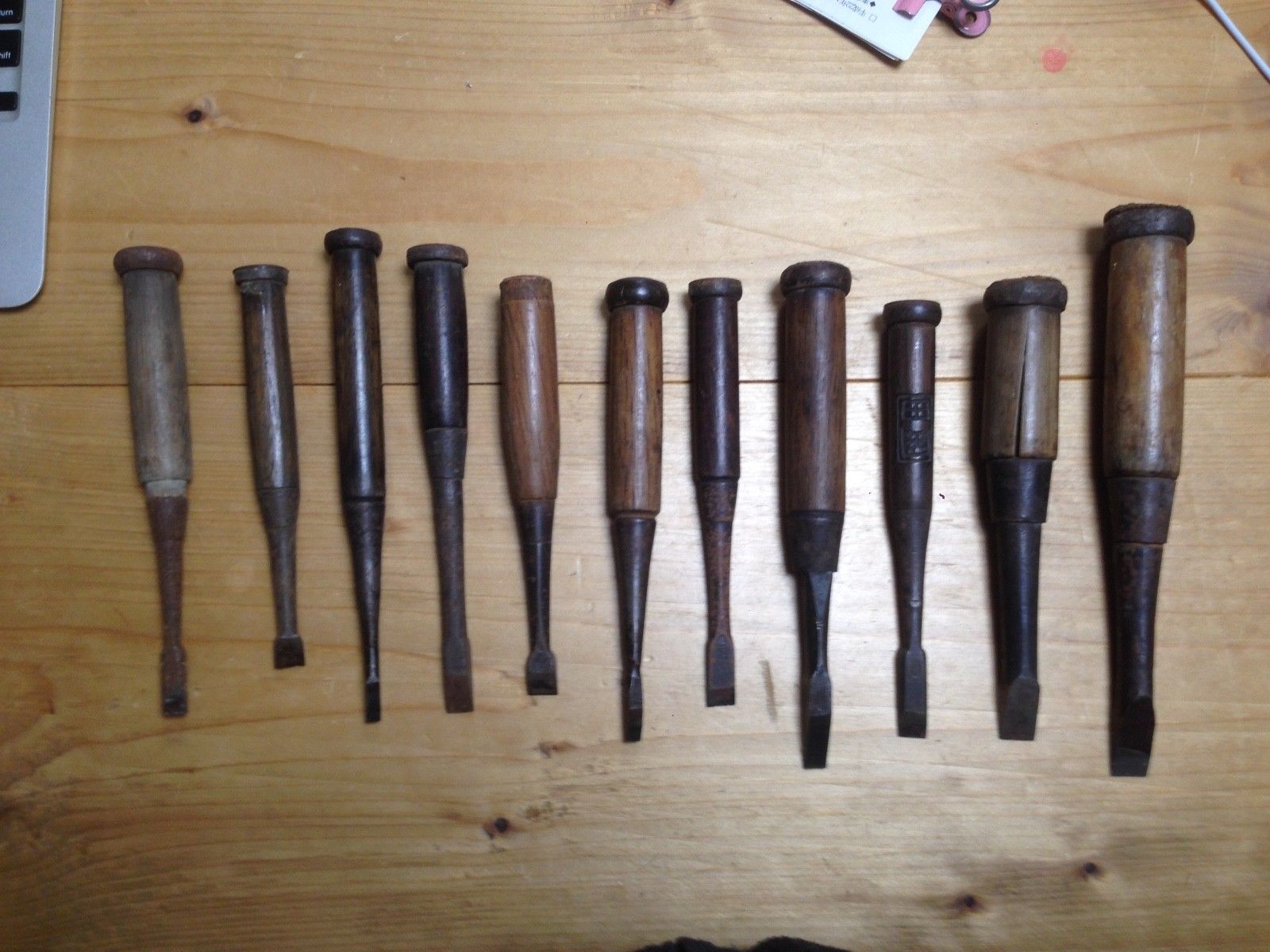 eleven used Japanese chisels #323