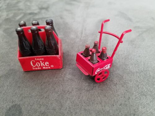 Title (ebay affiliate link): Rare Drink Coca Cola miniature mini 6 pack carton carrier and metal rolling cart