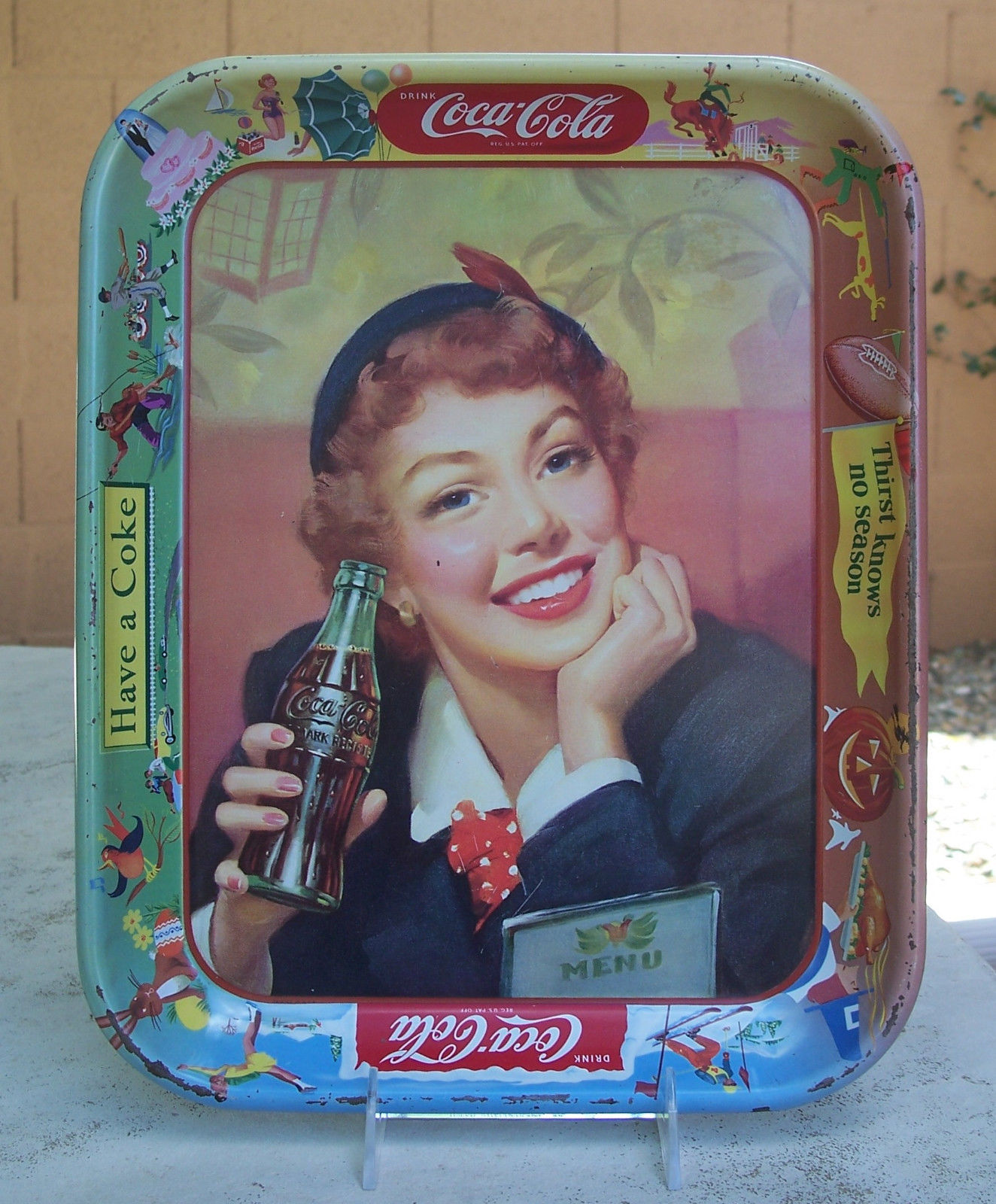 Title (ebay affiliate link): Vintage Coca Cola Menu Girl Soda Serving Tray Have a Coke Thirst Knows No Season