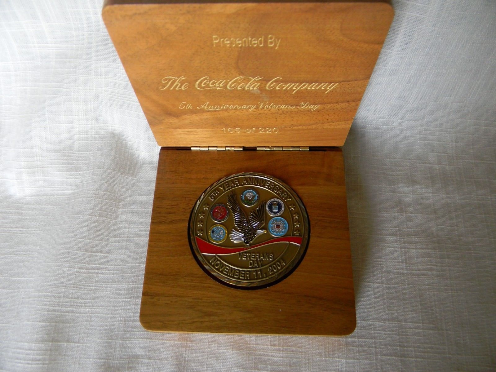 Title (ebay affiliate link): Coca Cola Veteran''s Day 2004 5th Year Anniversary Medallion in Presentation Box