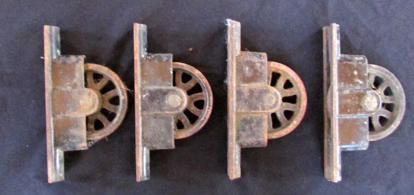 FOUR IDENTICAL EARLY 1900''s CAST IRON STEAMPUNK INDUSTRIAL PULLEYS