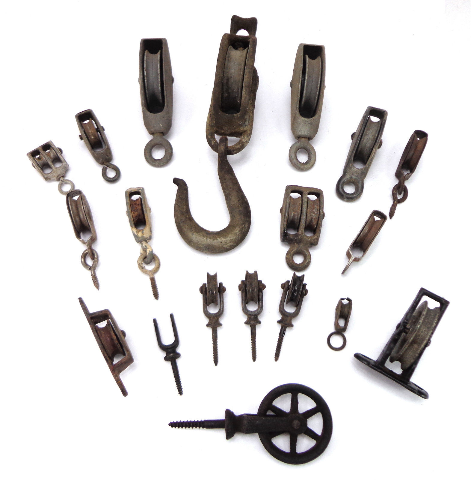 Title (ebay affiliate link): Antique small Pulley LOT Barn Block Tackle Clothesline cast iron Lamp vtg screw