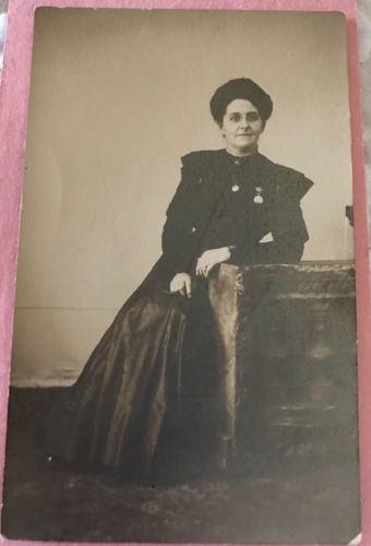 Title (ebay affiliate link): Vintage Postcard Victorian fashion lady w/ jewelry posing large trunk 1900s