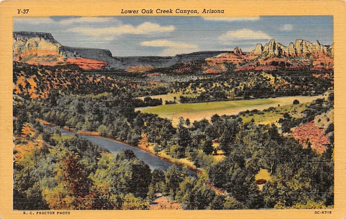 LOWER OAK CREEK CANYON, AZ. LINEN CARD, C028343