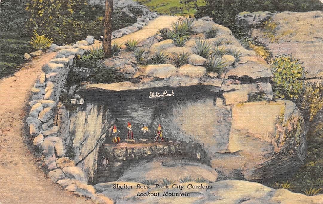 Title (ebay affiliate link): SHELTER ROCK, ROCK CITY GARDENS, LOOKOUT MT. LINEN CARD, C028349
