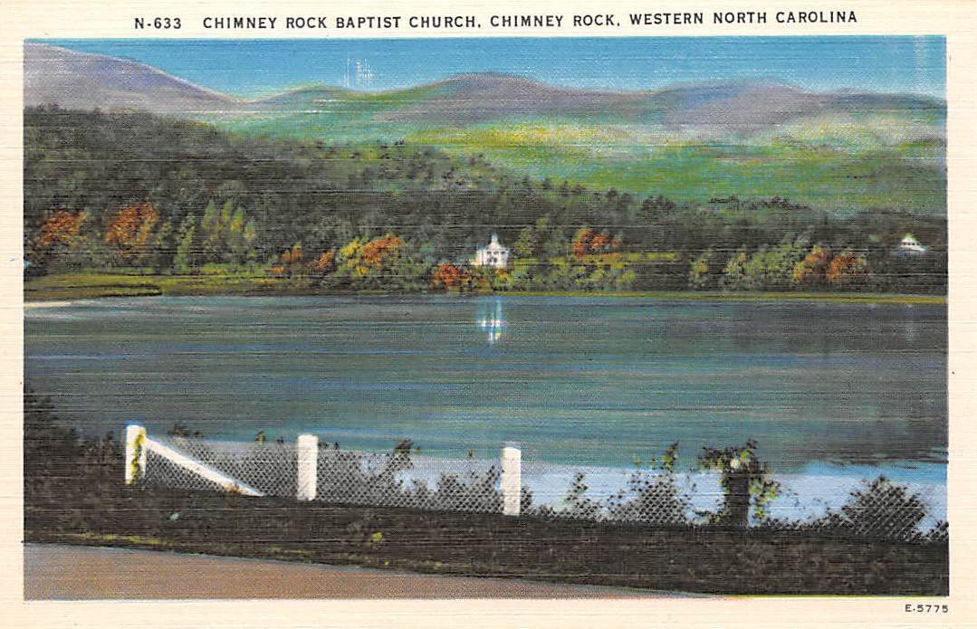 Title (ebay affiliate link): CHIMNEY ROCK BAPTIST CHURCH, NC. LINEN CARD, C028374