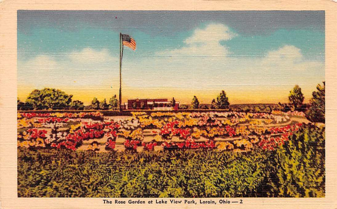 Title (ebay affiliate link): THE ROSE GARDEN AT LAKE VIEW PARK, LORAIN, OH. LINEN CARD, C028382