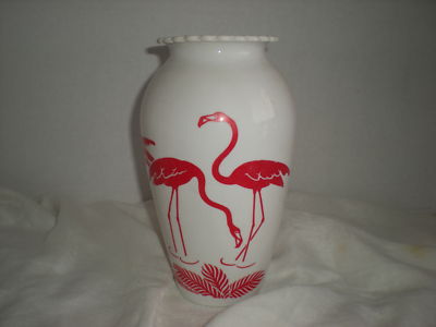 Fire King milk glass Flamingo vase