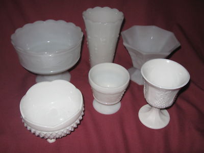 VINTAGE WHITE MILK GLASS GLASSWARE-LOT OF 6 PIECES