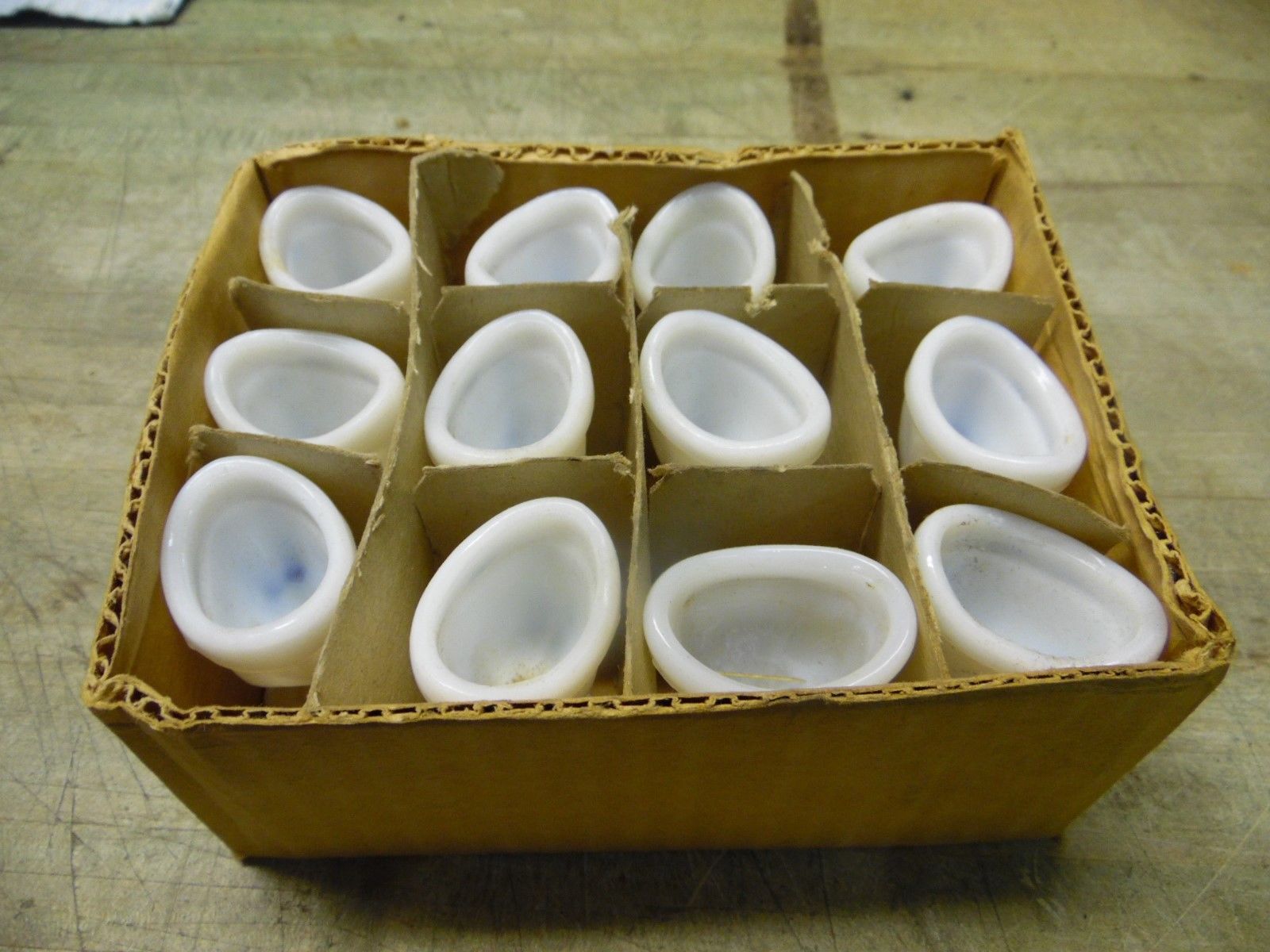 Vintage Lot Of 12 Milk Glass Eye Bath Cups / Partial Original Box / 8 Panel