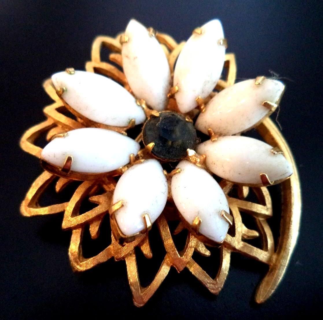 Title (ebay affiliate link): STUNNING VINTAGE ESTATE HIGH END MILK GLASS RHINESTONE FLOWER 2" BROOCH! G6761M
