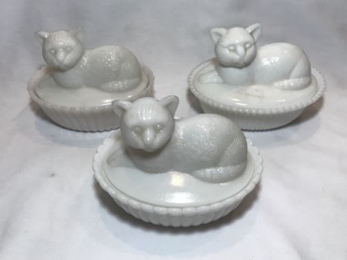 Title (ebay affiliate link): Set Of 3 Vintage Milk Glass Cat / Kitten Covered Nesting Dishes