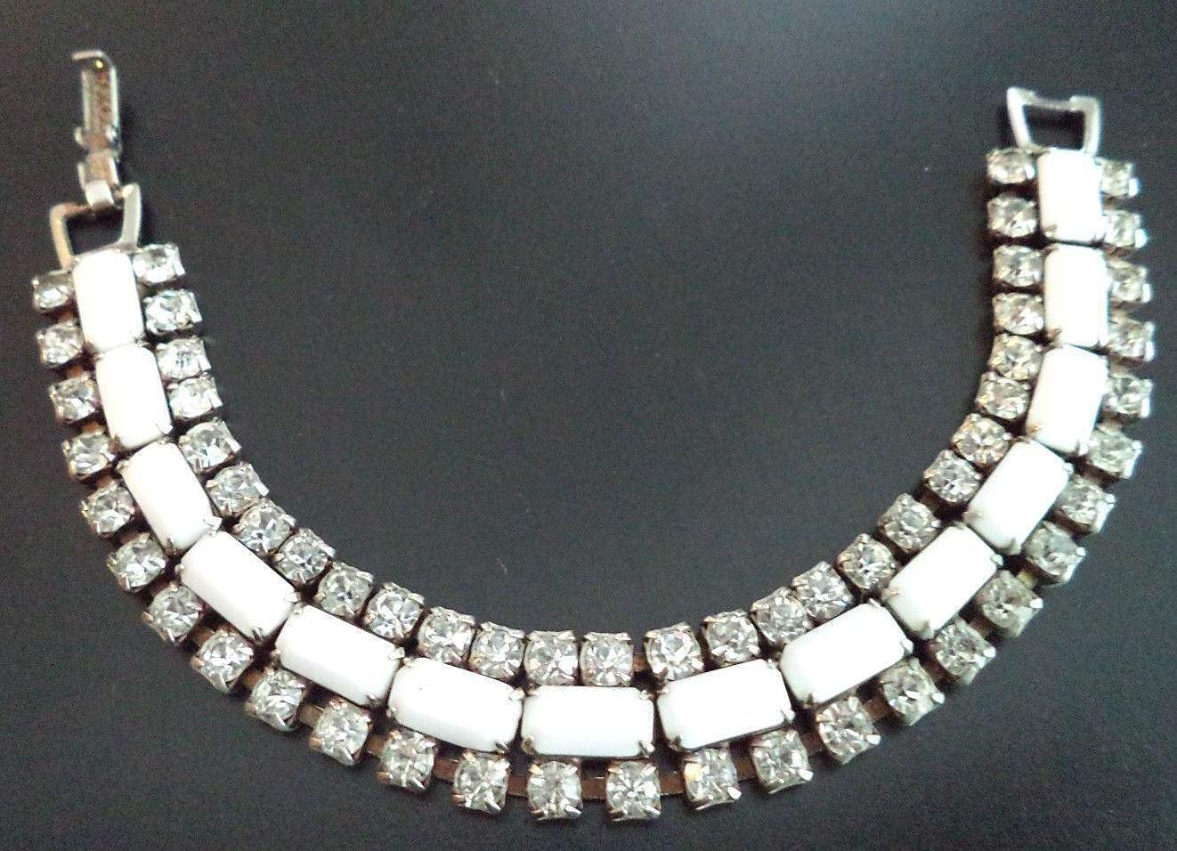 STUNNING VINTAGE ESTATE HIGH END MILK GLASS RHINESTONE 7 3/8" BRACELET!!! G6762J
