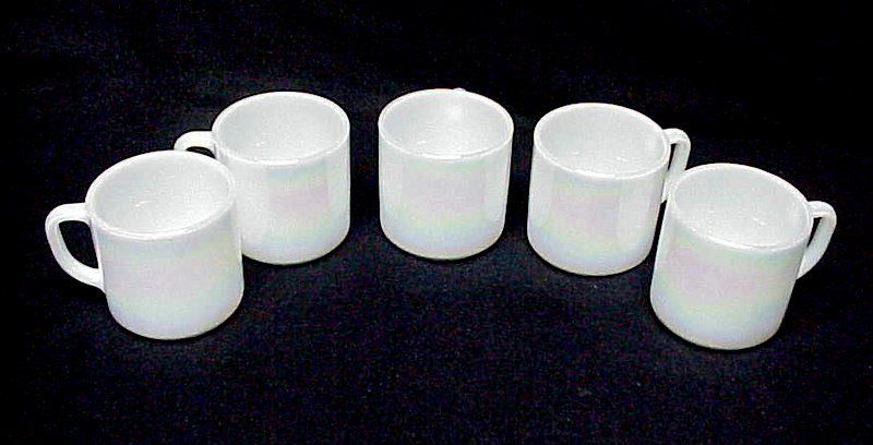 Title (ebay affiliate link): Vintage Lot Federal Fire King White Milk Glass Opalescent Iridescent MUGS