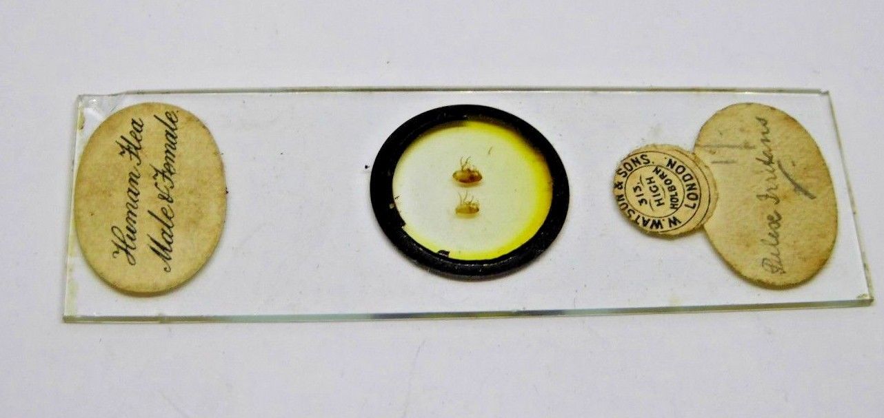 Title (ebay affiliate link): Antique W Watson & Sons Glass Microscope Slide - Human Flea Male & Female Ref#18
