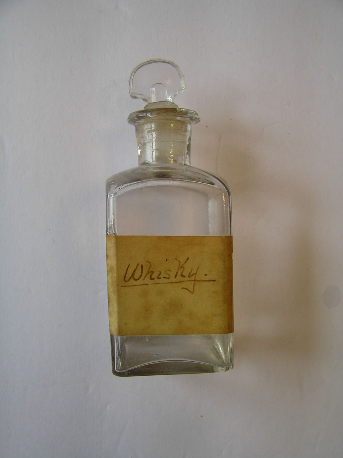 Antique Apothecary Glass Medicine Bottle with Glass stopper and Paper Label