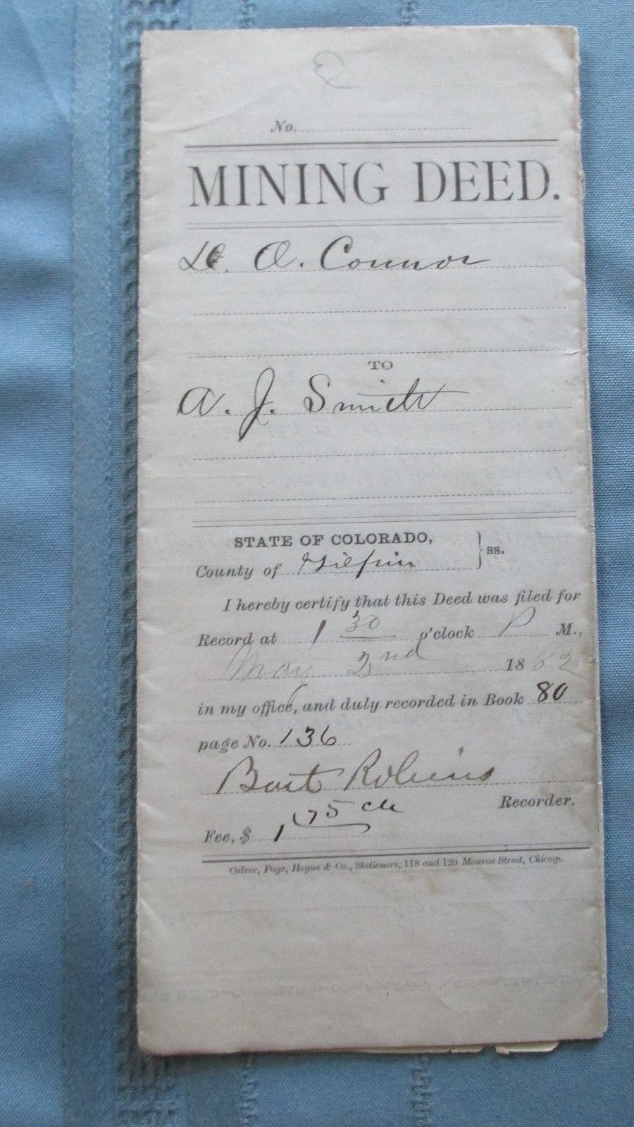Title (ebay affiliate link): 1882 Gilpin County Colorado Mining Deed-Mountain Lion Lode-Central City District