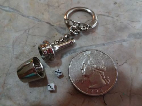 Title (ebay affiliate link): Keychain Key Chain Mini wine Drink Shaker hidden dice vintage bottle