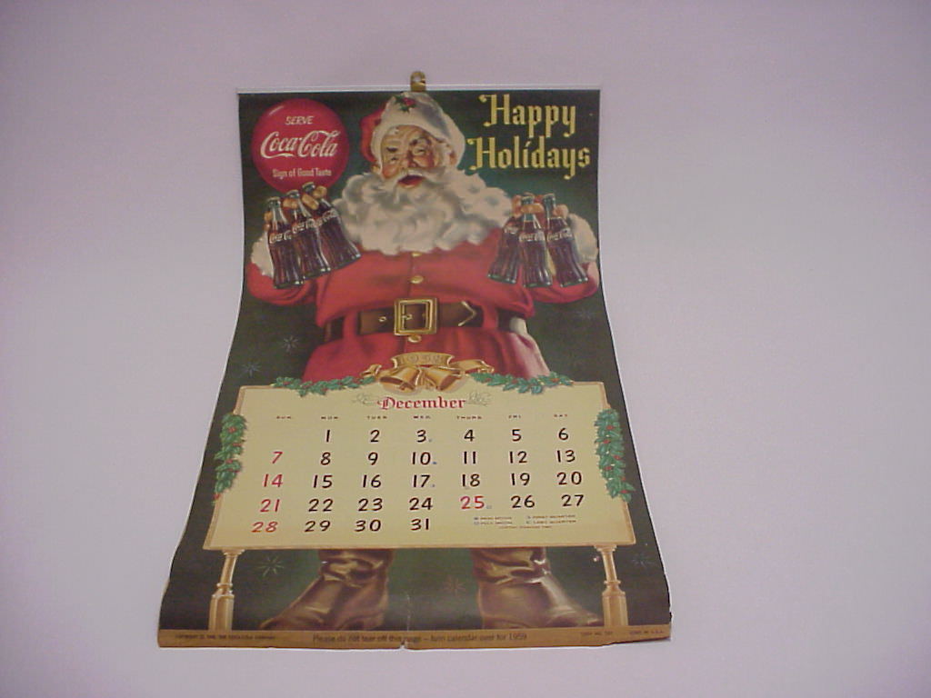 Title (ebay affiliate link): Vintage 1959 Coca Cola Calendar Christmas 1958 Santa Claus Great Image