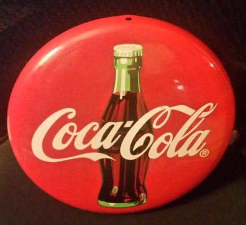 Title (ebay affiliate link): Vintage Coca Cola Button Metal Tin Advertising Sign 12" Inches 1990