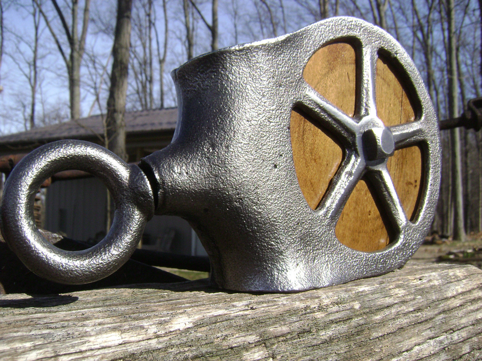 Title (ebay affiliate link): Antique / Vintage Cast Iron Barn Pulley Old Farm Tool Rustic Primitive