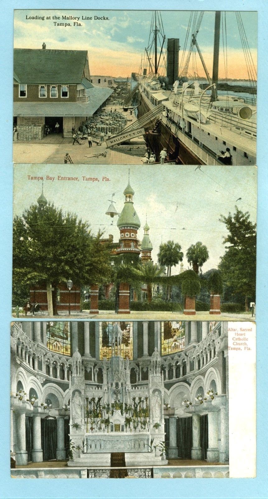 Title (ebay affiliate link): 3 of 9 Vintage FL, Tampa, "Entrance to Tampa, Loading at Mallory Line Docks &...