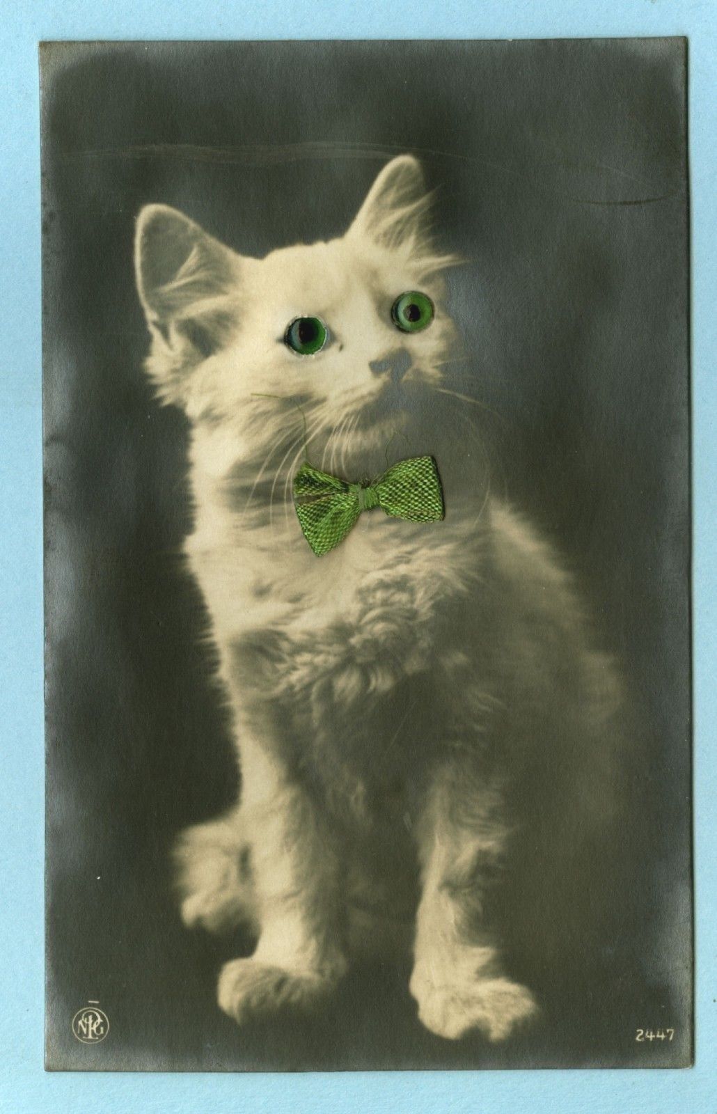 Title (ebay affiliate link): 1 of 2 Vintage, Cute White Kitty Cat, Has a Green Bow & Green Eyes that Roll...