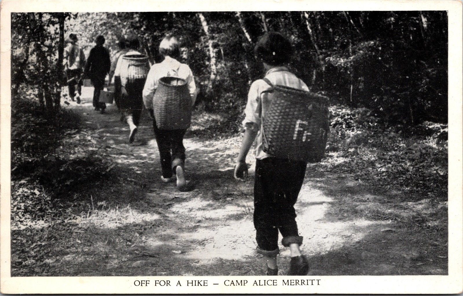 Title (ebay affiliate link): OFF FOR A HIKE, CAMP ALICE MERRITT, EAST HARTLAND, CONN POSTCARD