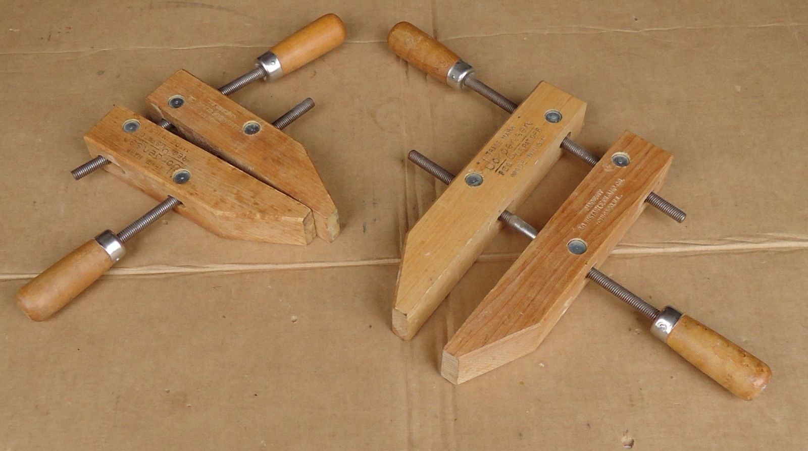 2 jorgensen wooden clamps,adjustable handscrew clamps woodworking tools.USA