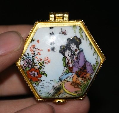 Title (ebay affiliate link): 4.7CM China Chinese Wu Cai Porcelain Belle Beauty hexagon Jewelry Box Boxes