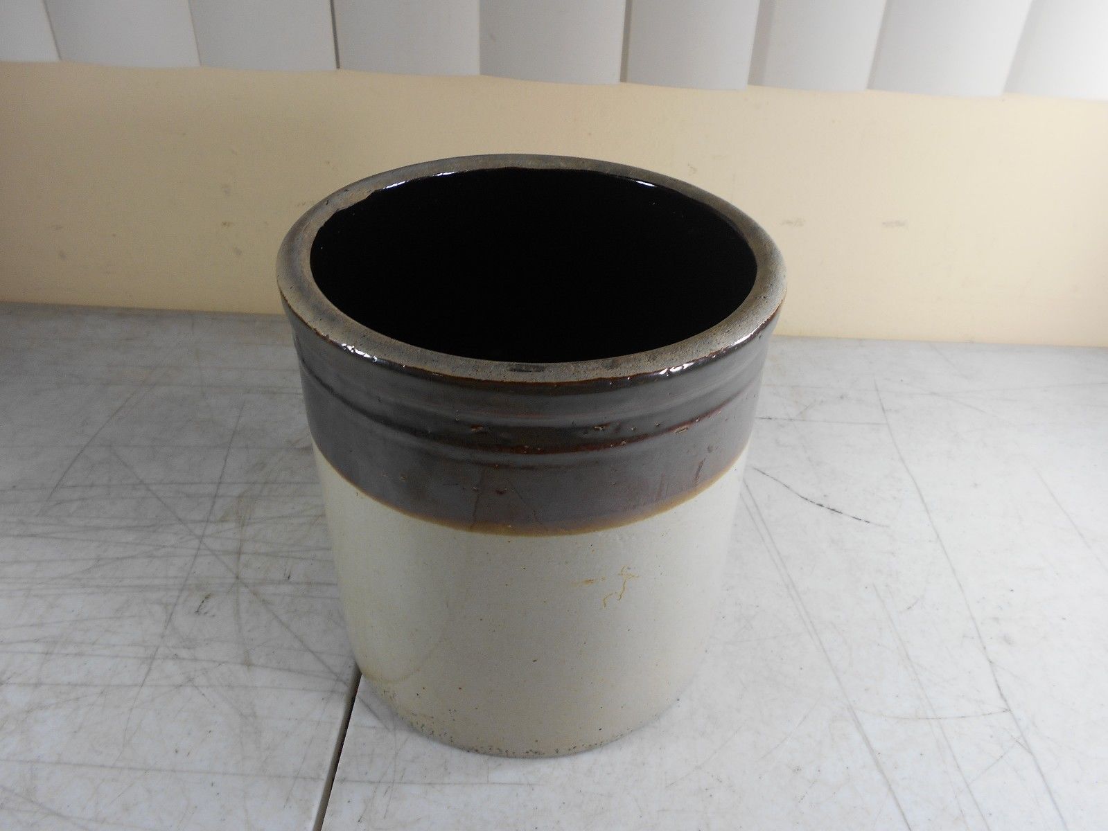 Antique One Gallon Stoneware Crock with 2 Tone Brown Nice for Kitchen Utensils