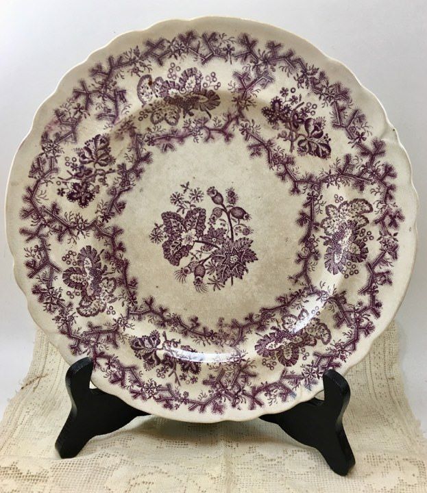 Antique - Purple Plate - "Coral" Design - 8 1/4" Diameter