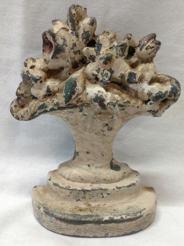 Antique Small Cast Iron Flower Basket Pedestal Doorstop Primitive Hubley