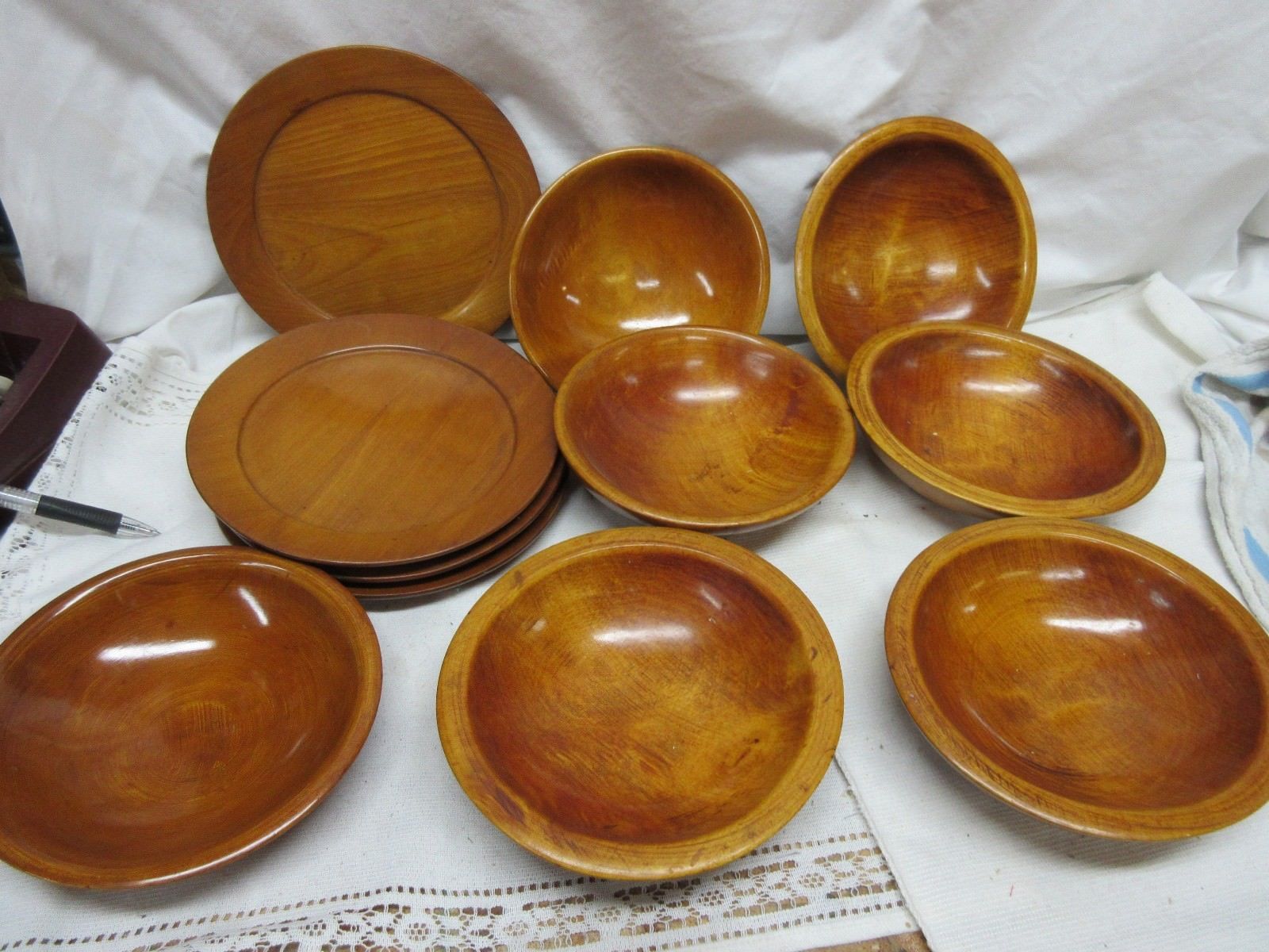 Lot of 11 Wooden Wood Bowls & Plates - Vintage Munising Parrish